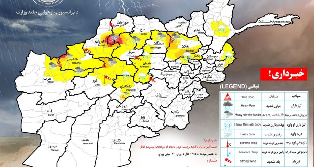 هشدار اداره هواشناسی: احتمال بارندگی شدید، سیلاب و بادهای تند در ۱۶ ولایت کشور وجود دارد