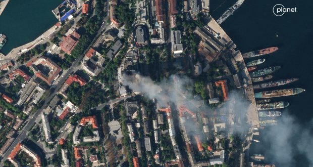 خبرگزاری رویترز گزارش داده که ارتش اوکراین با حمله موشکی گسترده پایگاه اصلی نیروی دریایی روسیه در کریمه را هدف قرار داده است. بربنیاد گزارش خبرگزاری رویترز، اوکراین با موشک مقر فرماندهی یگان دریایی روسیه در دریایی سیاه را که ...