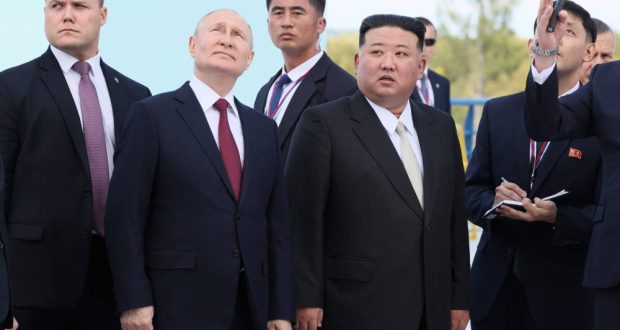 کیم جونگ اون، رهبر کوریایی شمالی و ولادیمیر پوتین، رییس جمهور روسیه بامداد امروز چهارشنبه، ۲۲ سنبله در شرق روسیه ملاقات کردند. شبکه خبری سیانان گزارش داده است که پیونگیانگ همزمان با این دیدار دو موشک بالستیک شلیک کرده است. ...