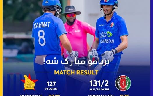 Home » افغانستان » افغانستان کرکټ ملي لوبډلې زمبابوې ته په ۸ ویکټو ماتې ورکړه