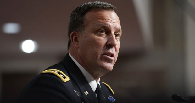 دغه امريکايي جنرال داسې مهال د داعش ډلې د ځپلو په موخه له طالبانو سره د همکارۍ کولو خبره کوي، چې روانه اوونۍ د امريکا بهرنيو چارو وزارت د داعش خراسان ډلې مشر ثناالله غفاري پر سر ۱۰ ميليونه ډالر جايزه اعلان کړه.