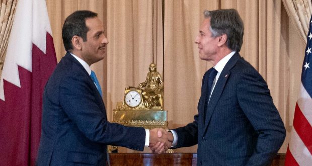 د امريکا بهرنيو چارو وزير انټوني بلېنکن پرون دوشنبه د (غبرګولي په ۱۶مه) د قطر له بهرنيو چارو وزير محمد بن عبدالرحمن سره ليدلي او د دوه اړخيزه مسايلو ترڅنګ يې د افغانستان پر وضعيت هم خبرې کړي دي.