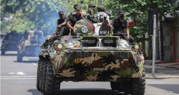 نن پنجشنبه د کولمبو په شمول د سرېلانکا په ګڼو ښارونو کې د لاريون کوونکو له لوري د عامه شتمنيو د وېجاړولو مخنيوي په موخه پوځيان ځای پر ځای شوي او دا واک ورکړل شوی چې د ژوند او عامه شتمنيو د ژغورنې په موخه زور کارول تمثيل کړي.