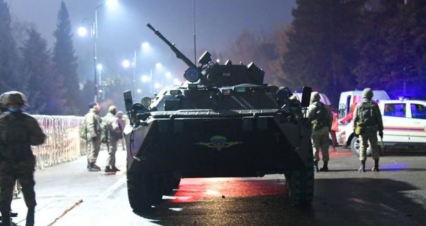 وروسته له هغې په قزاقستان کې د ګازو د بيو لوړېدو په غبرګون کې لاريونونه پيل شول، د دغه هېواد ځواکونو چهارشنبه د شپې د (مرغومي په ۱۵مه) د پلازمېنې الماتي د امنيت خوندي کولو عمليات پيل کړي دي.