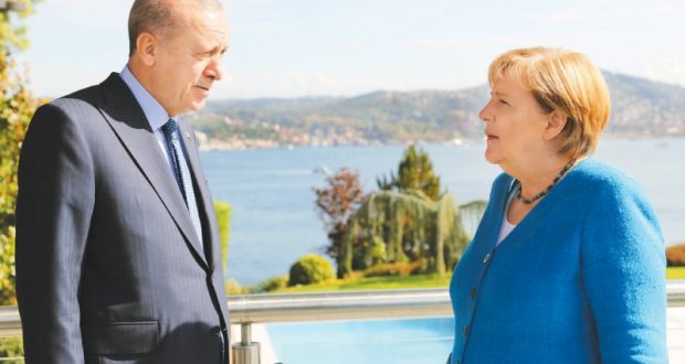 د جرمني لومړۍ وزيرې انګيلا ميرکل چې ټاکل شوې په راتلونکو څو ورځو کې يې د لومړۍ وزيرې په توګه ماموريت پای ته ورسېږي، د ترکيې له ولسمشر رجب طيب اردوغان سره لېدلي دي.