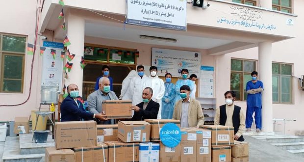 د ننګرهار عامې روغتیا رئیس ډاکټر نصیر احمد درانی وایي، په ختیځ کې د یونیسف ادارې له لورې ورسره د ماسک، لباس، سورنج، کنولونو، سیروم مکمل سیټونو، د اکسیجن مصرفي سیټونو او یو شمېر نور چې ټول اتلس قلمه توکې کیږي، د کرونا ناروغۍ د درملنې په موخه مرسته وکړه .